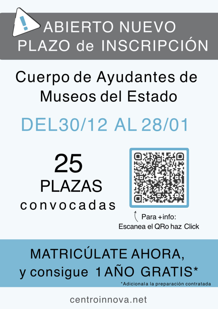 La convocatoria contempla la oferta de 25 plazas para el ingreso al Cuerpo de Ayudantes de Museos Nacionales por turno libre: